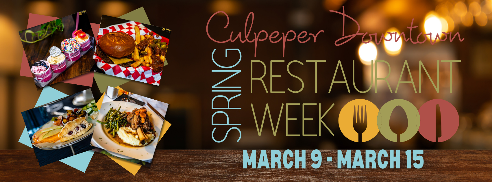 Eat, Drink and Be Merry in Culpeper Downtown during Spring Restaurant Week! Food brings people together and what better place to come together than Culpeper Downtown during Spring Restaurant Week, taking place Monday, March 18, through Sunday, March 24.ย Celebrate...