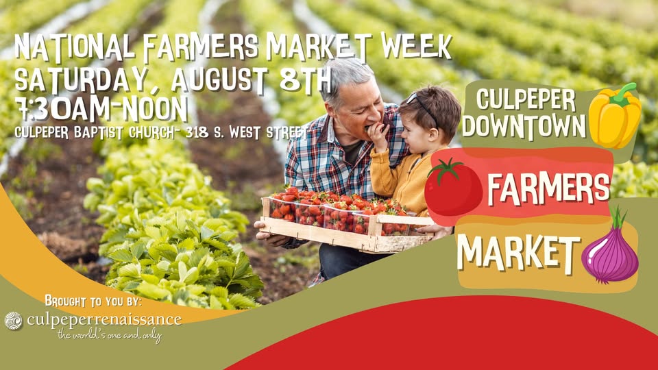 🎉Join your favorite vendors at the Culpeper Downtown Farmers Market Saturday, August 9th, as we celebrate National Farmers Market Week!